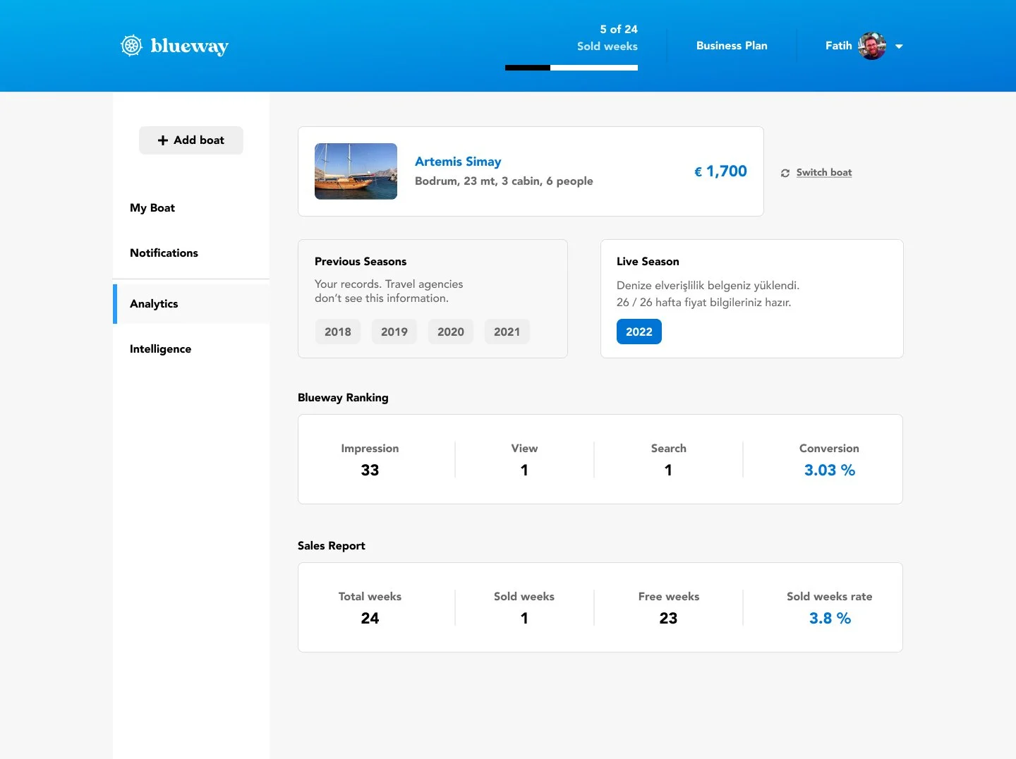 Blueway offers a seamless experience managing boat holiday bookings with lots of data-related advantages for the Boat Owners and Travel Agencies. The product is awarded with ‘App of the Year’ by Turkish Chamber of Shipping in 2020.