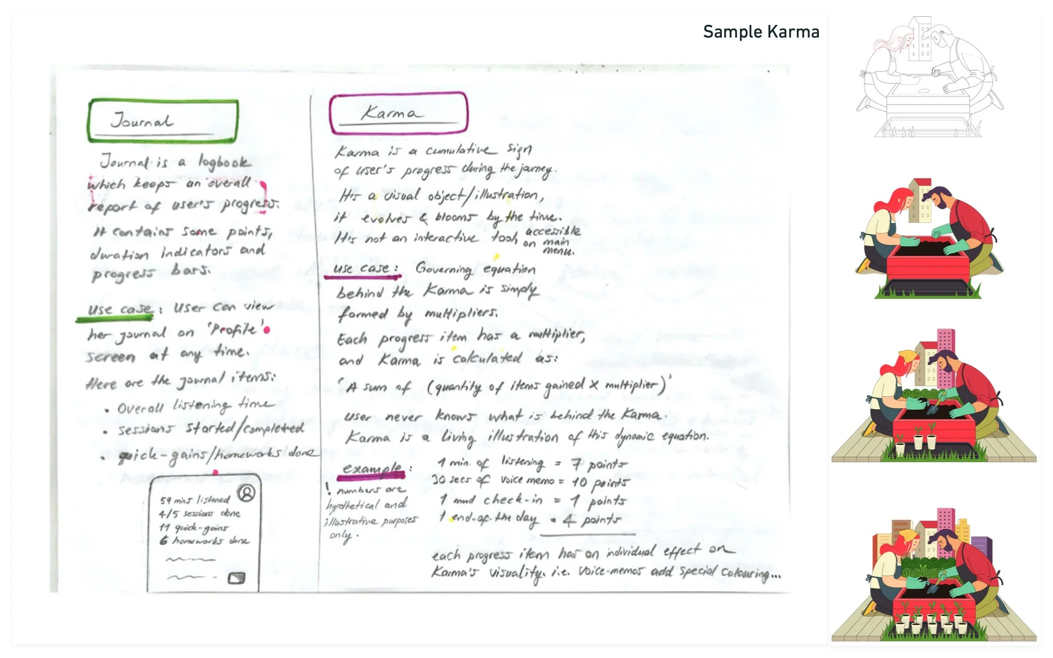 The research team were serving mountains of great meditation content with a unique methodology, so the design should bring that content to mobile phones with keeping that methodology.