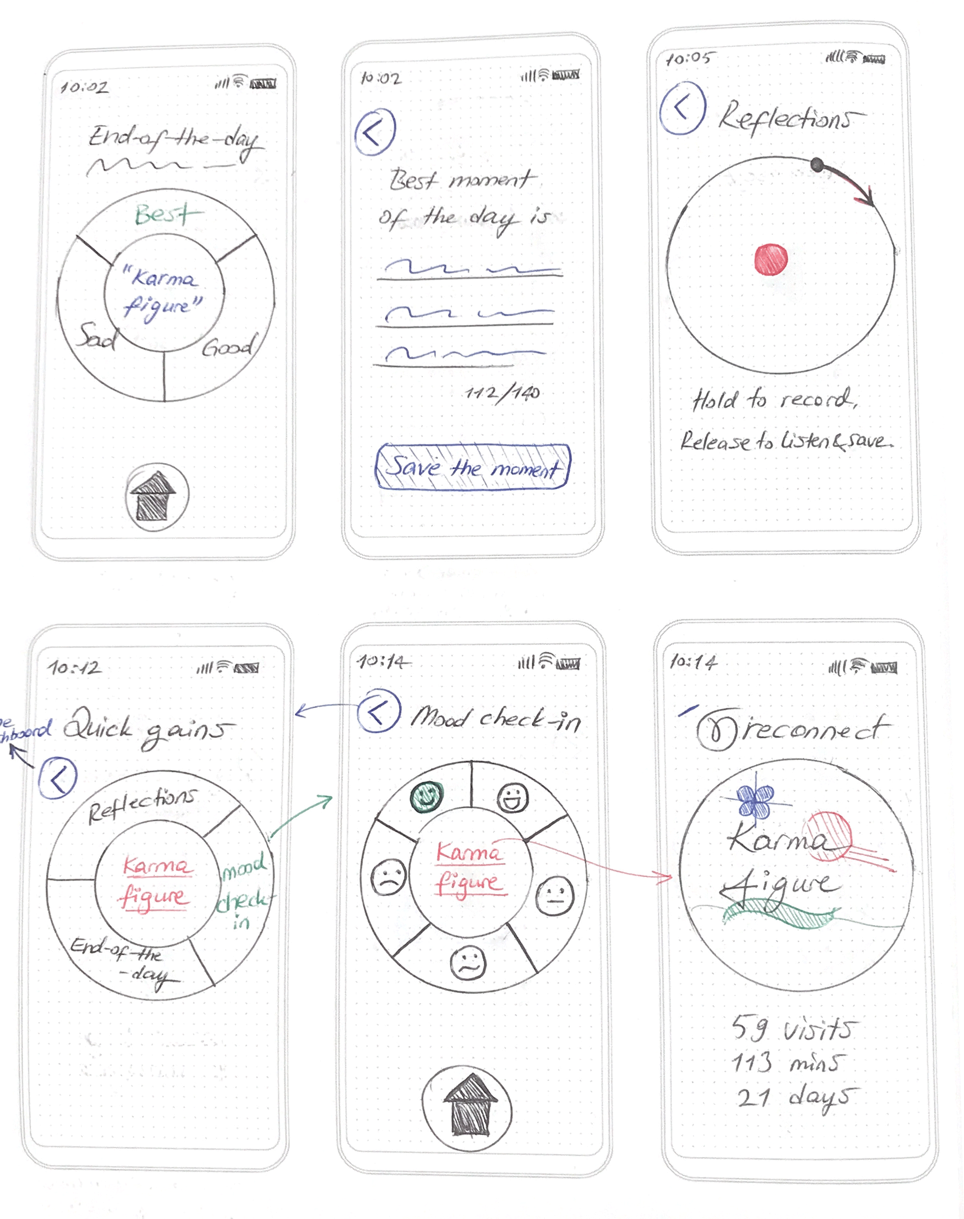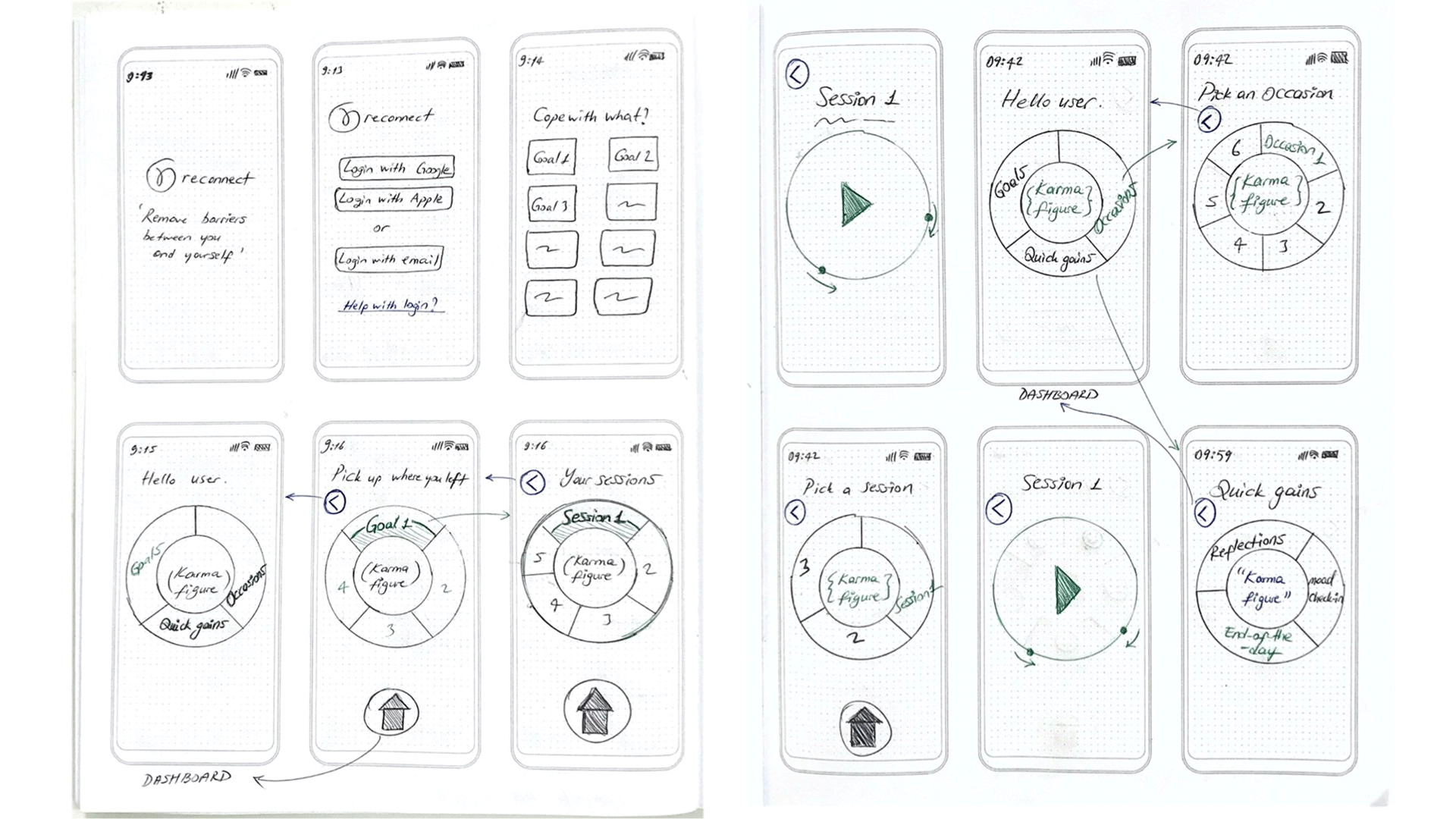 After final discussions, we ended up a third one which was simply a mash-up of both. The final concept provides ‘content cycles’ and offers a progressive way of use to help people with making most of their meditation time.